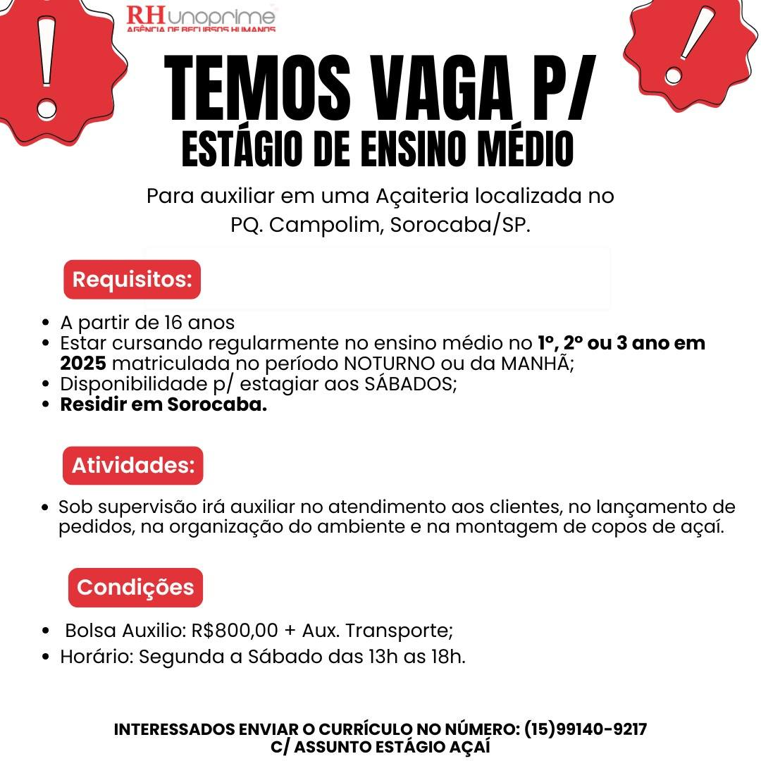 Estágio Ensino Médio em Açaiteria – Sorocaba