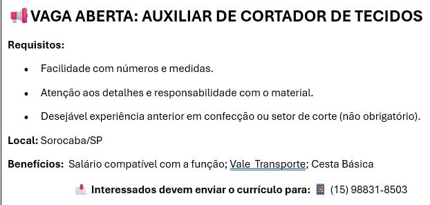 Vendedor de Planos de Saúde em Sorocaba VENDEDOR (A) DE PLANOS DE SAÚDE*Você busca uma oportunidade para alavancar seus ganhos e ter flexibilidade total? Sorocaba/SP e Região (Home Office) NECESSÁRIO ter experiência comprovada com vendas de planos de saúde. Modalidade PJ – HOME OFFICE (autonomia e liberdade para você!). Horário: Sem carga horária (sua produtividade dita seus resultados!). Comissões atrativas e ilimitadas (seu esforço se transforma em lucro!). Quer impactar vidas e construir sua independência financeira? Interessados (as) encaminhar o currículo via E-MAIL: jobbrasilrecursoshumanos@gmail.com Recrutamento & Seleção – JOB BRASIL RH+