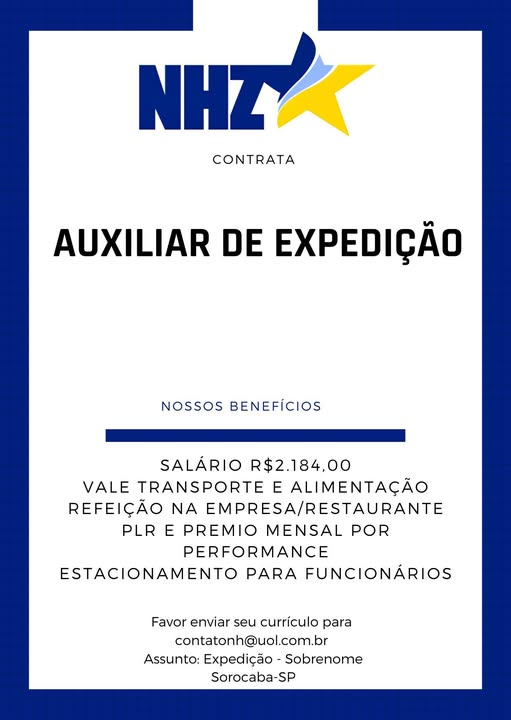 Boa tarde a todos, estamos contratando funcionários para esta vaga, ambos os sexos, ainda temos 2 vagas para preencher. Quem se interessar, favor mandar seu currículo no e-mail: contatonh@uol.com.br